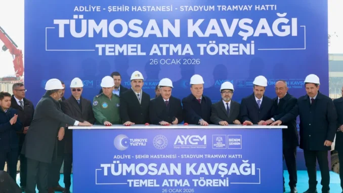 KONYA (İGFA) – Ulaştırma ve Altyapı Bakanlığı ile Konya Büyükşehir Belediyesi tarafından yürütülen Stadyum-Şehir Hastanesi Tramvay Sınırı ikinci etap çalışmaları kapsamında TÜMOSAN Köprülü Kavşağı’nın temeli düzenlenen merasimle atıldı.